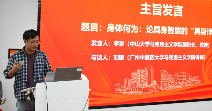 针对李教授的发言,刘鹏老师首先总结了一下李老师的发言内容,接着提出了自己的看法。他认为,“具身悖论”本质上是古老的身心关系和人类认知本质问题在AI时代的当代体现。AI只是基于“干认知”的模式模仿,它学会了写诗的“逻辑”而非基于“湿认知”拥有了写诗的“体验”。与可替换、理论上可永生的计算机硬件不同,人的身体的根本特性在于其“可朽性”。