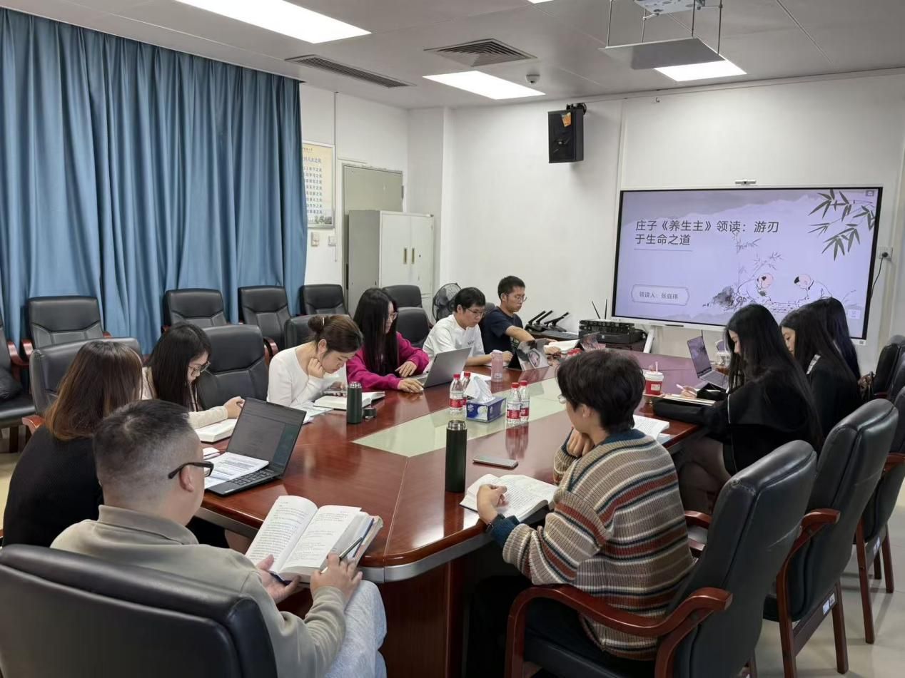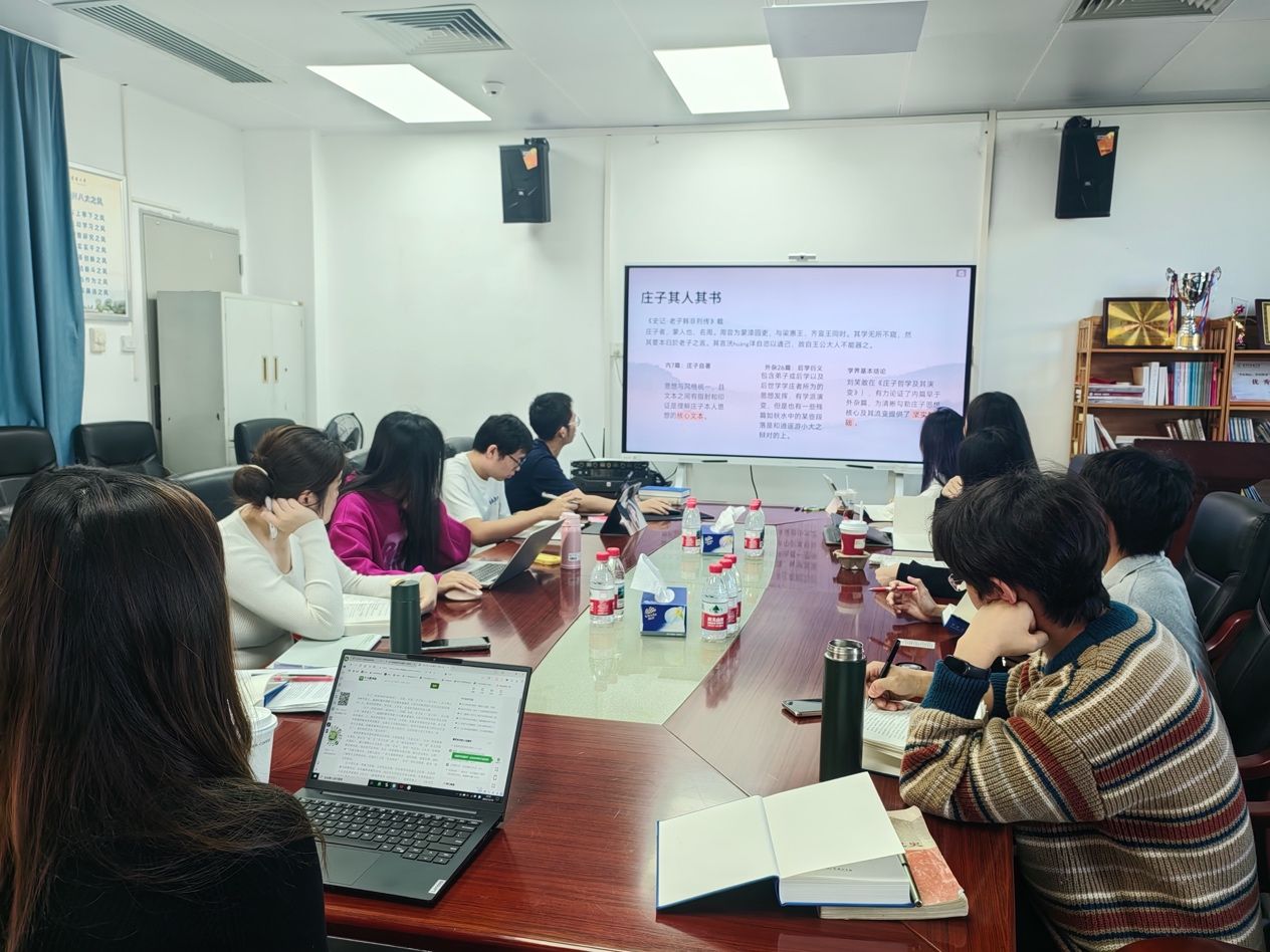2025年12月18日下午两点半,马克思主义学院第十期“随·意”研究生读书会于人文楼403室如期开展。本次活动由严云山和马千隽共同担任领读教师,2025届科学技术哲学专业全体研究生参与。读书会以《庄子·内篇》的核心思想,特别是《逍遥游》与《养生主》的哲学意蕴为研读重点,并结合学术科研方法和读书方法进行了深入交流。