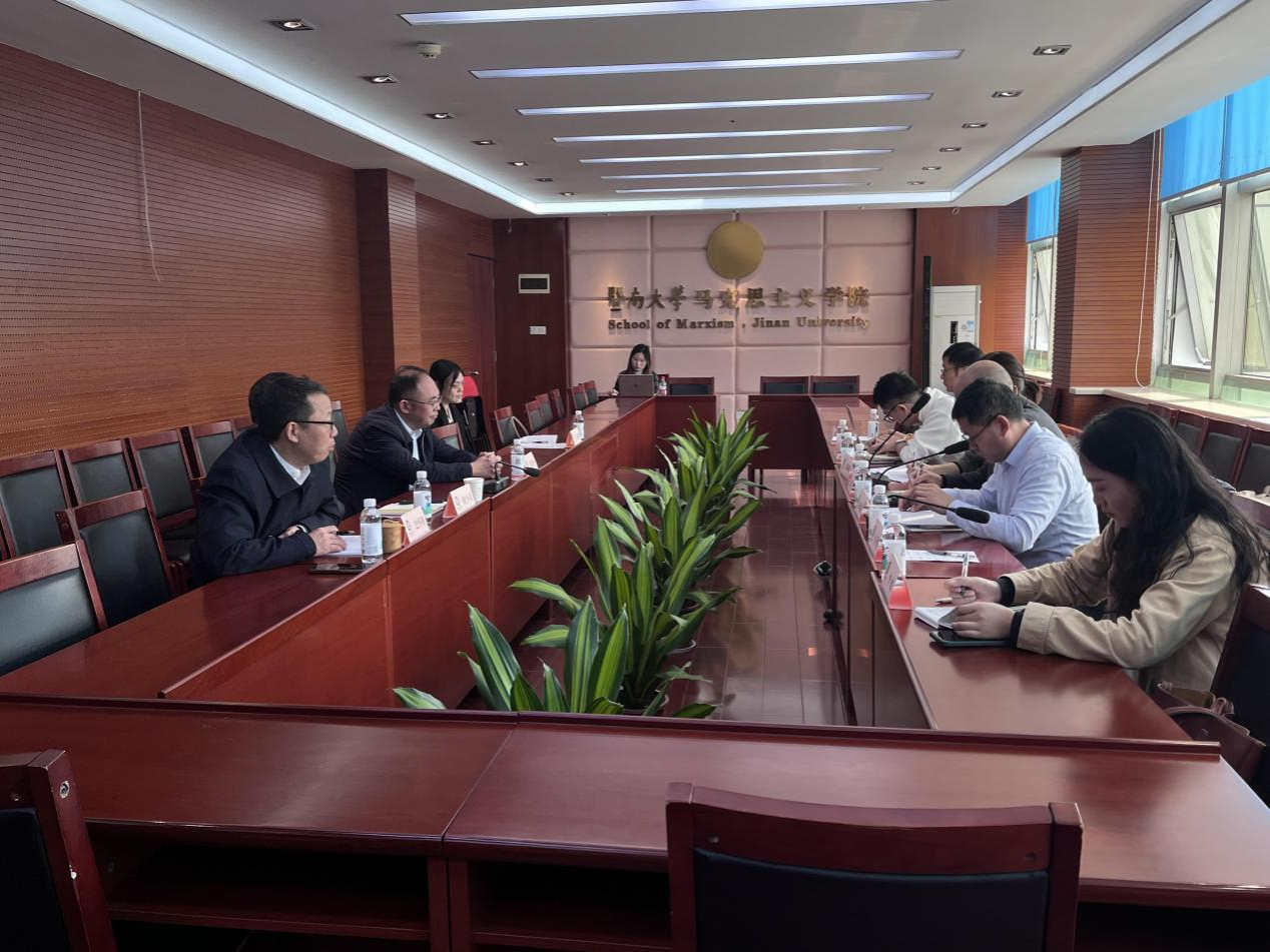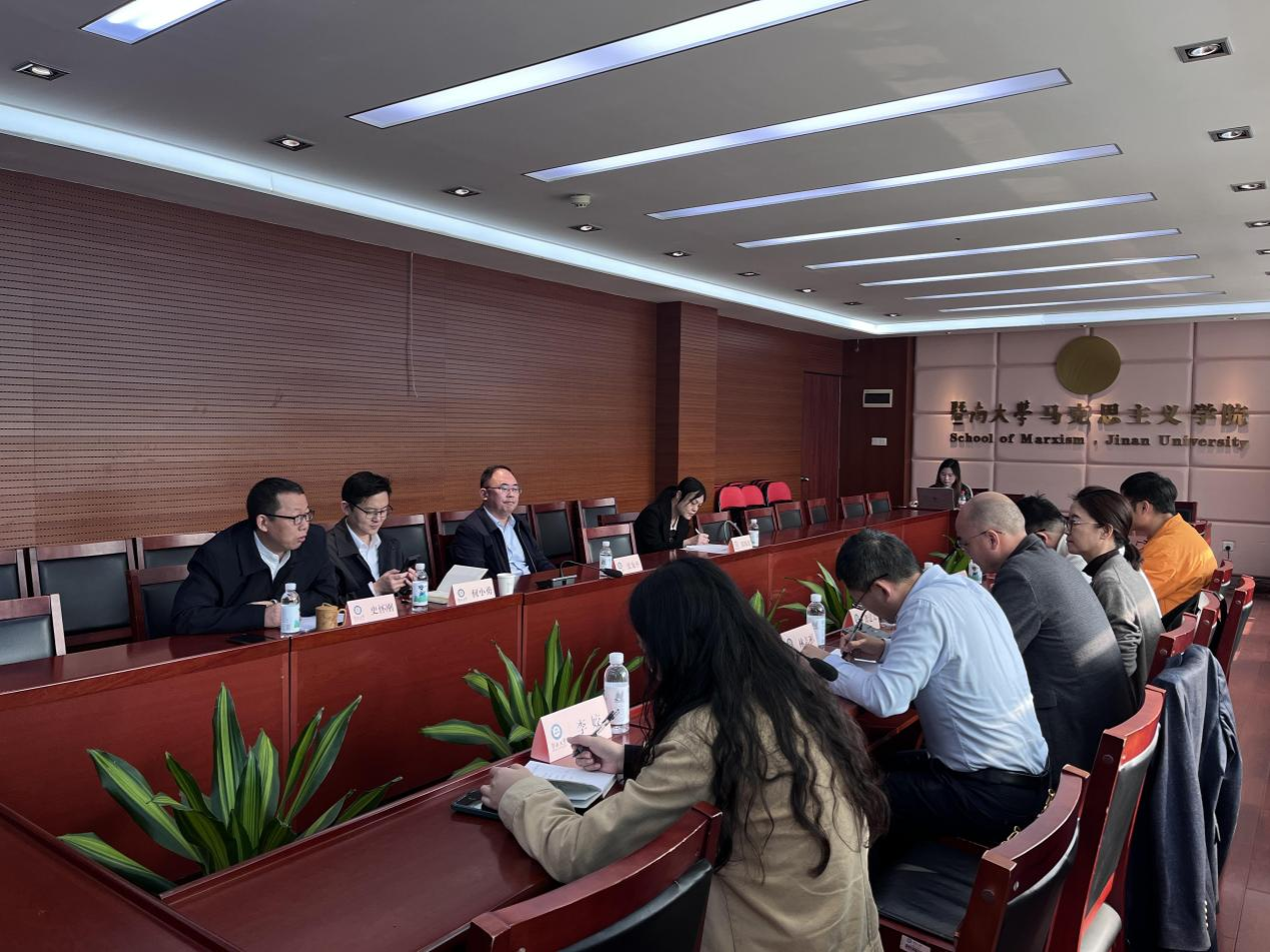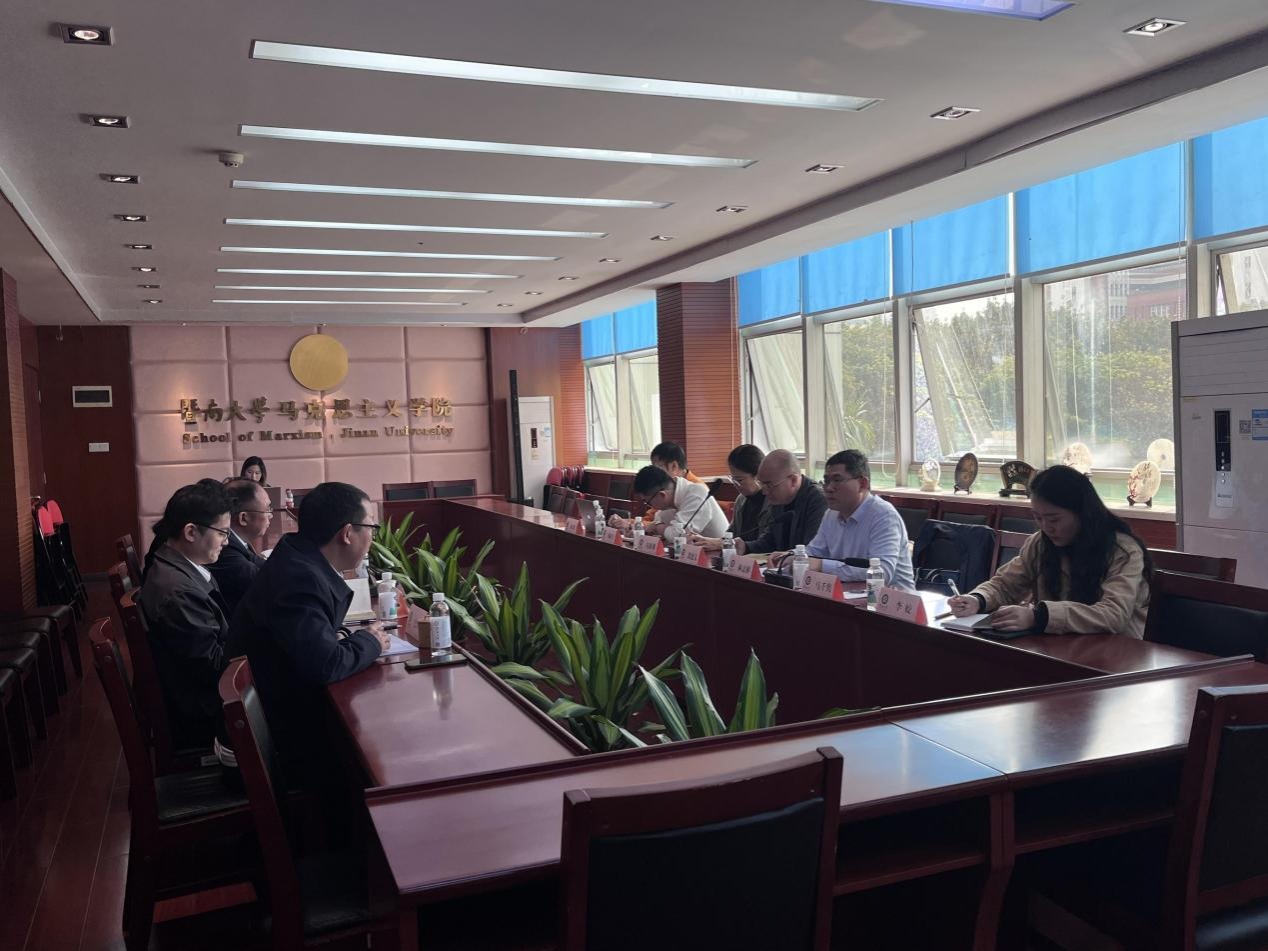 在交流环节,我校调研团队结合工作实际,就课程对标思政课的设计思路、学分设置、师资配置、意识形态风险防控等关键问题与对方深入探讨。龚建文书记表示,暨南大学马克思主义学院在国情教育课程体系构建、教材开发、教研机构设置等方面的做法和经验极具有借鉴价值,为我校破解港澳台学生国情教育薄弱难题提供了清晰路径。双方还就第二课堂转化为第一课堂实践环节、未来合作指导与教材共享等达成初步共识。