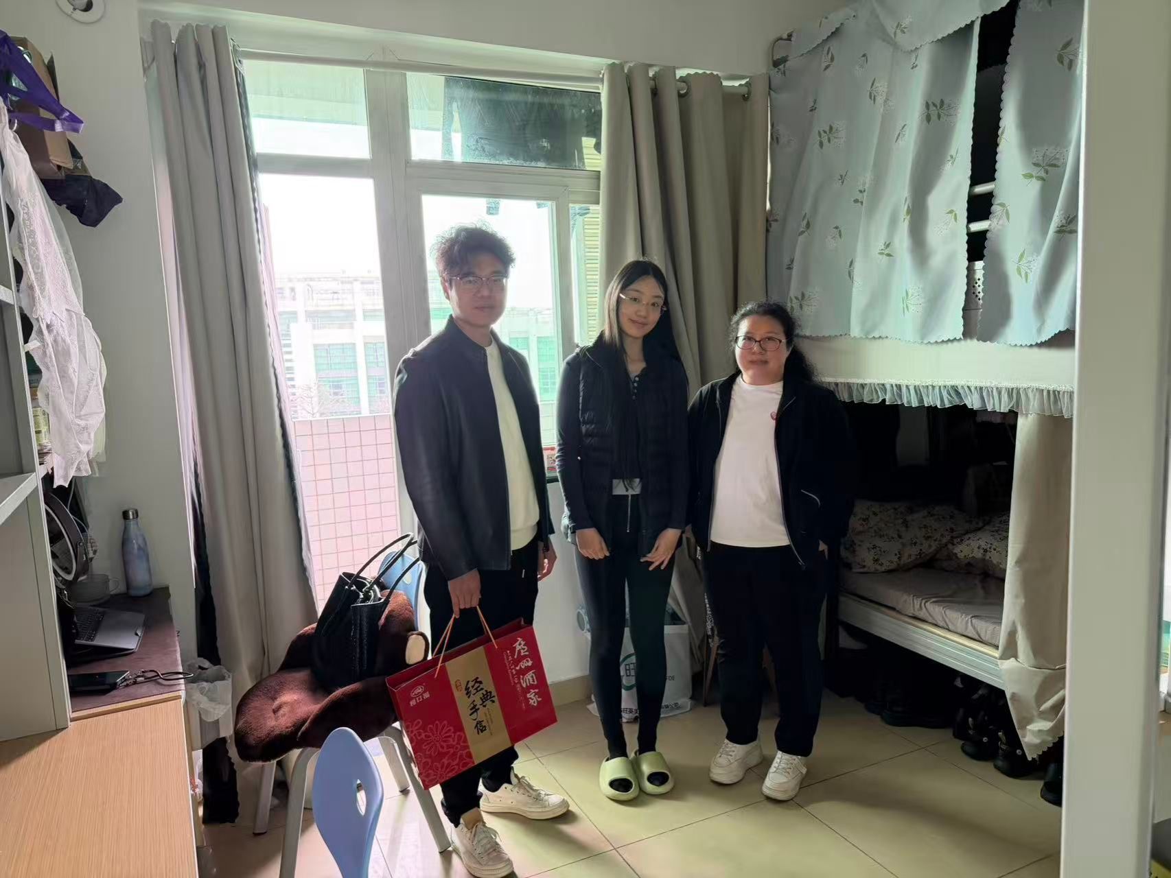 今年学院共有4名研究生留校,分别居住在教学区国际楼和生活区7栋。每到一处,曾庆娣副院长都亲切地向同学们致以诚挚的新春祝福,祝愿大家新年快乐、诸事顺遂,并在新的一年里取得更加丰硕的学术成果。学院还精心准备了新年慰问品,表达对同学们的牵挂与鼓励。